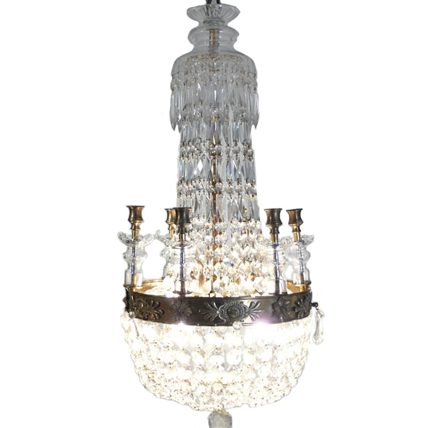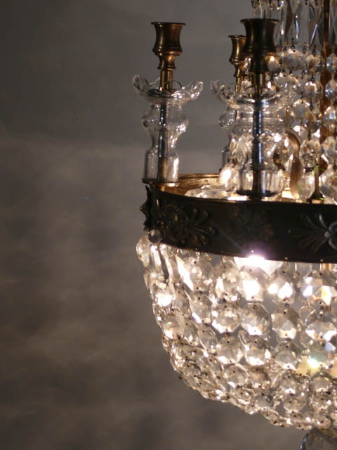 SMALL EMPIRE CRYSTAL BAG CHANDELIER SIX CANDLE HOLDERS 1'1/i WIDE 2'9/i HIGH 10 KG