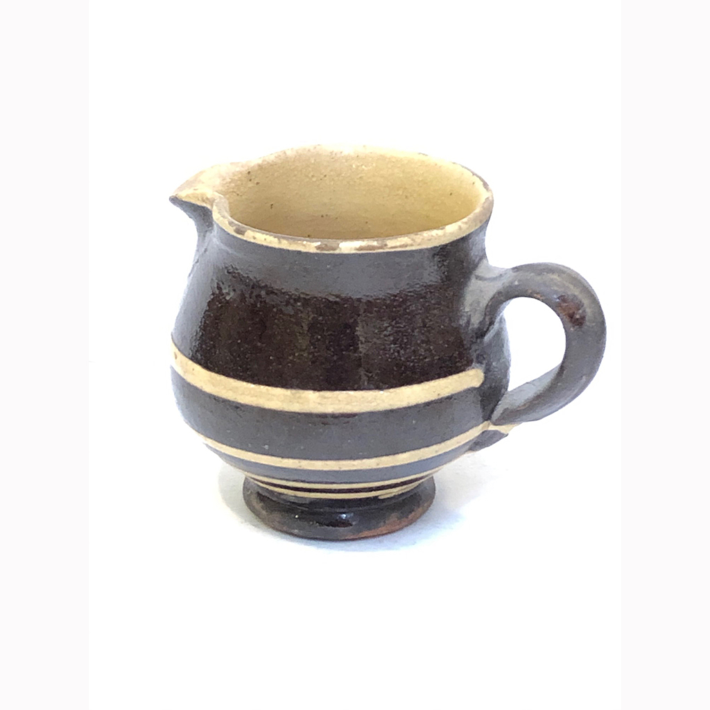 SMALL FRENCH BROWN AND GREAM STRIPED JUG 6 CM HIGH