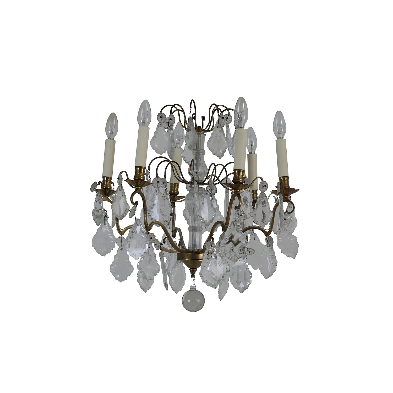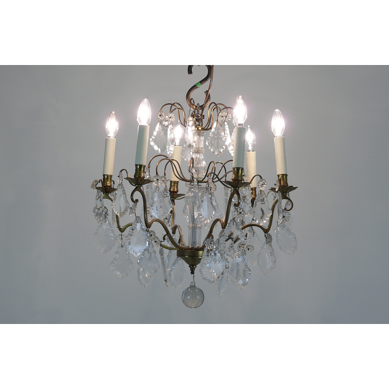 SMALL FRENCH CRYSTAL CHANDELIER SIX LIGHT WITH PEAR SHAPED DROPS