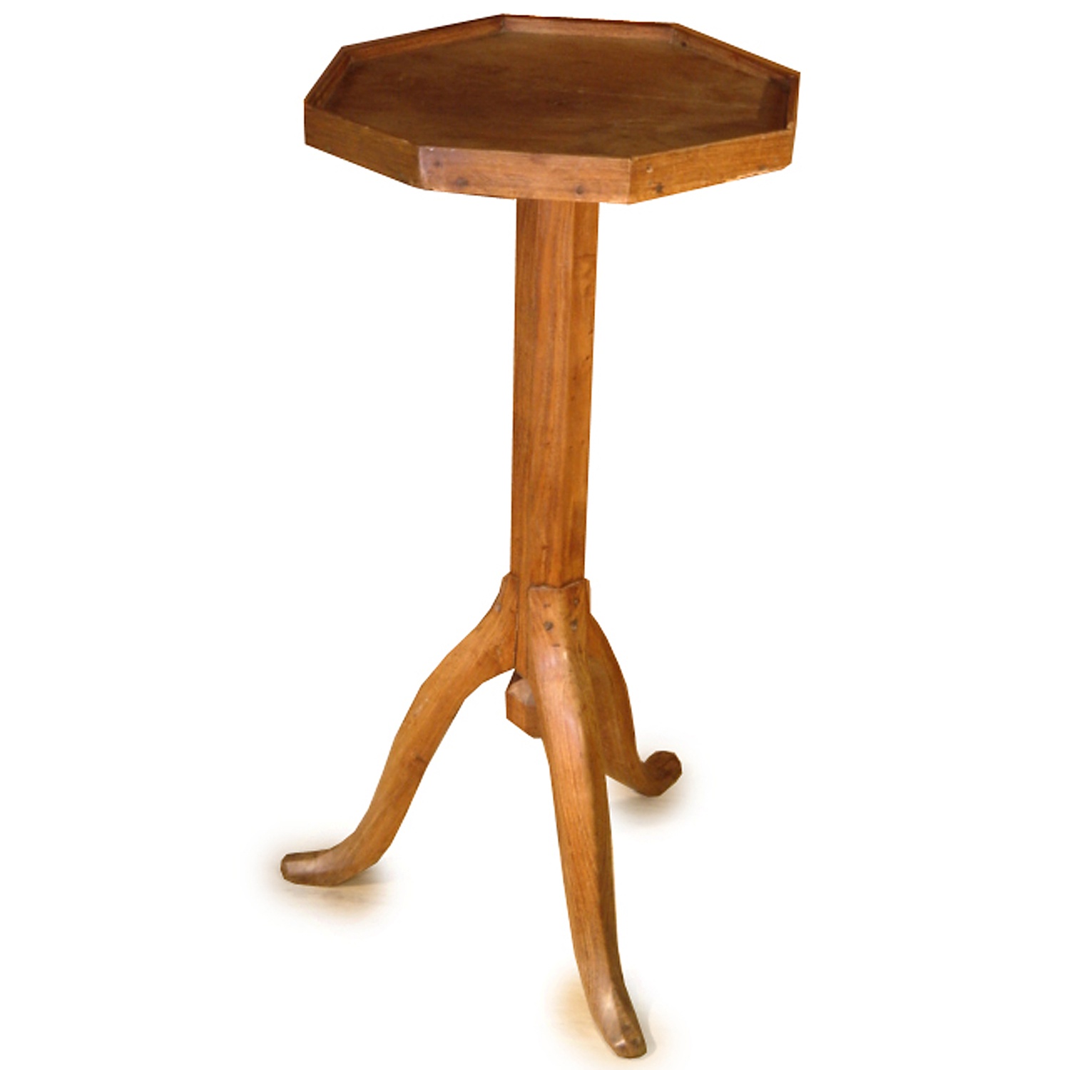 SMALL FRENCH LIGHT OAK PEDESTAL OCCASIONAL TABLE WITH HEXAGONAL TOP 33 CM DIAM 69 CM HIGH