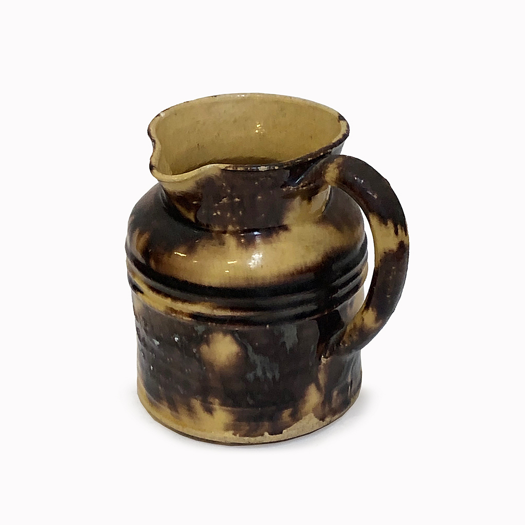 SMALL FRENCH SLIP GLAZED EARTHENWARE CHOCOLATE JUG 9 CM HIGH (X2)