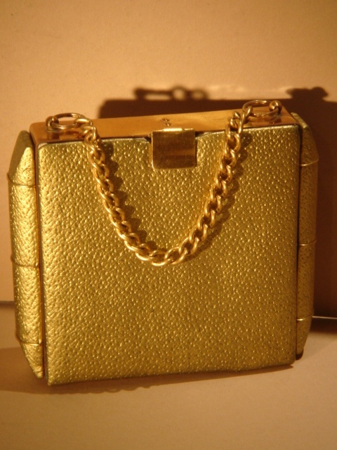 SMALL GOLD LEATHER EVENING HANDBAG WITH GOLD CHAIN STRAP 14 CM WIDE