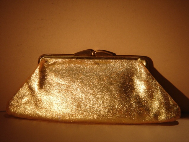 SMALL GOLD LEATHER PURSE CLUTCH HANDBAG 26 CM WIDE
