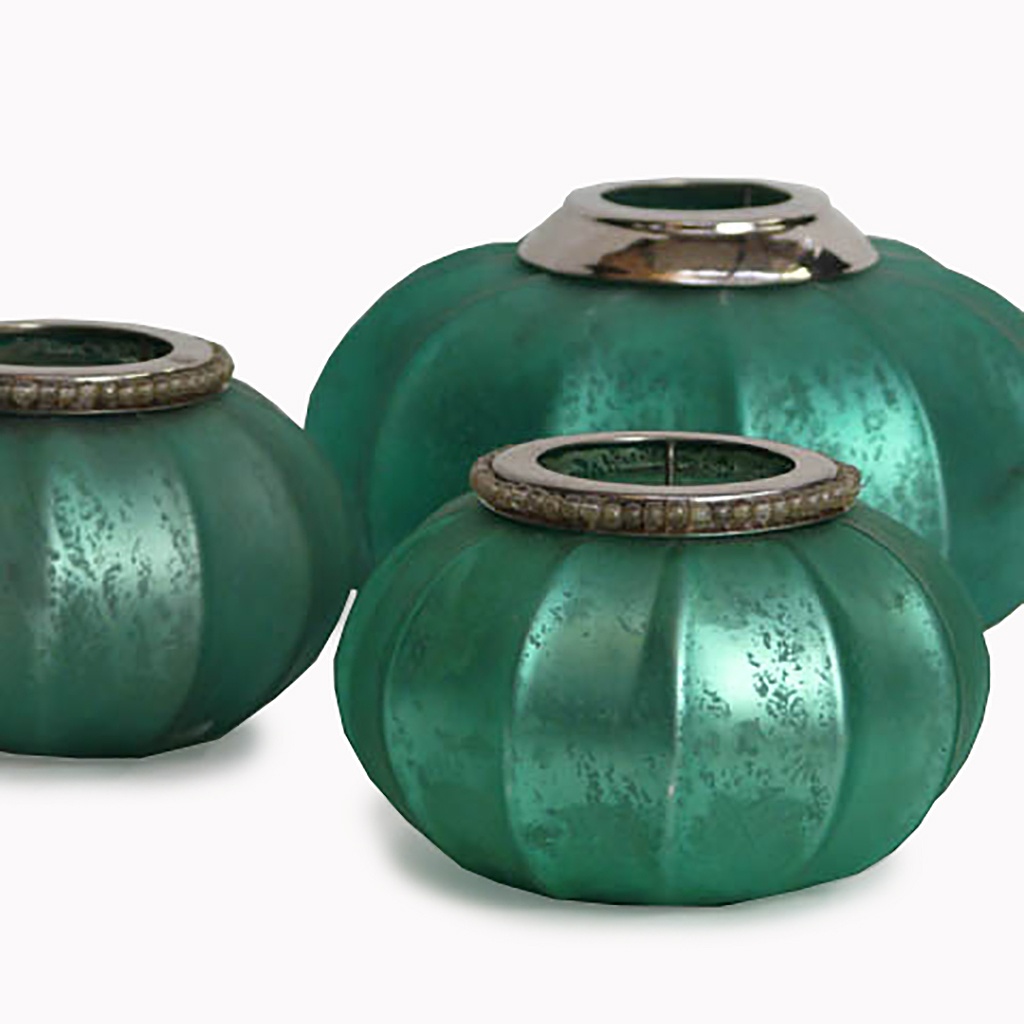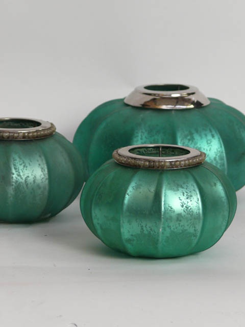 SMALL GREEN / TORQUOISE GLASS LANTERN / NIGHT LIGHT 11 CM - 15 CM DIAM.