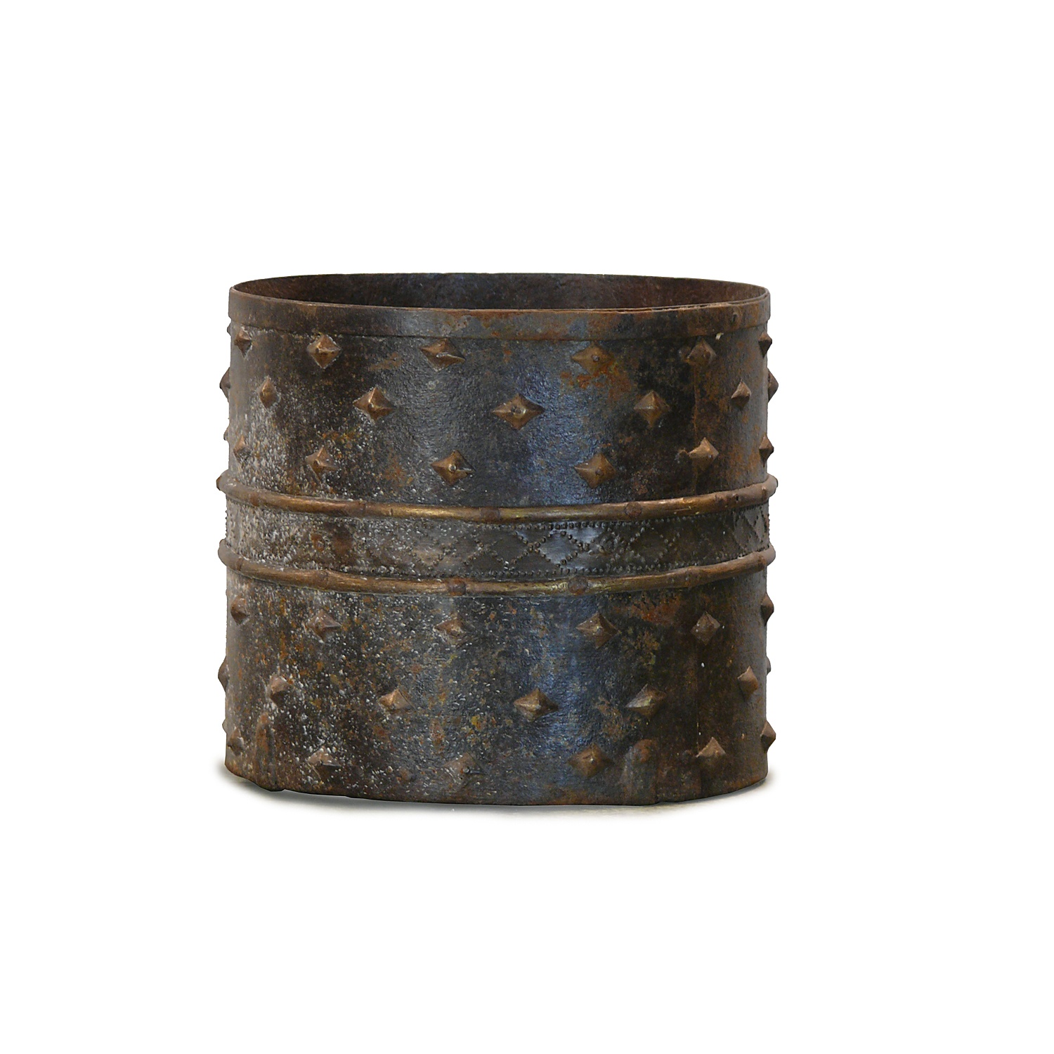 SMALL INDIAN ETHNIC JARDINIERE POT WITH DIAMOND STUDS 18 CM HIGH 20 CM DIAM