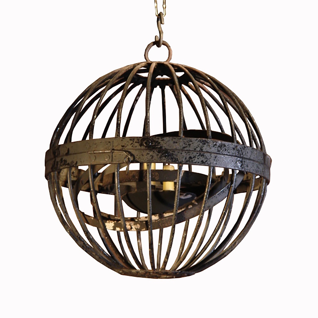 SMALL INDIAN WROUGHT IRON GIMBEL SPHERE LANTERN