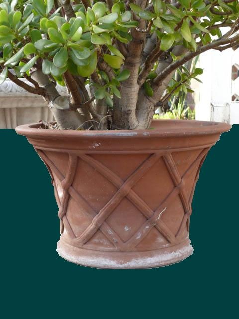 SMALL IRISH TERRACOTTA GARDEN URN BASKET RELIEF PATTERN