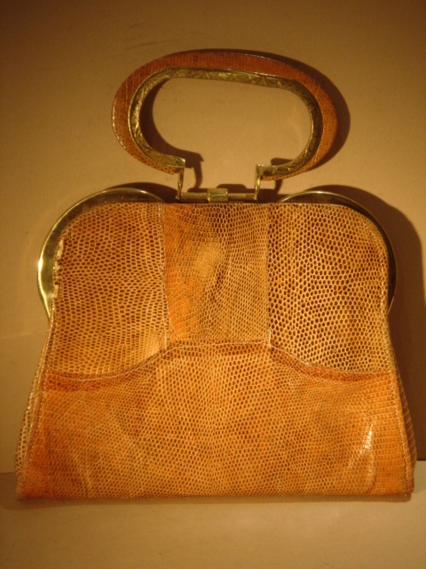 SMALL LIGHT TAN SNAKESKIN HANDBAG WITH LOOP HANDLE 22 CM WIDE