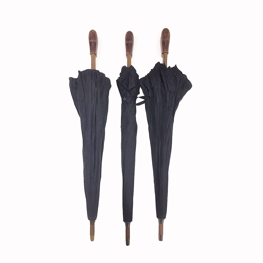 SMALL MID VICTORIAN UMBRELLA WITH WOODEN HANDLE