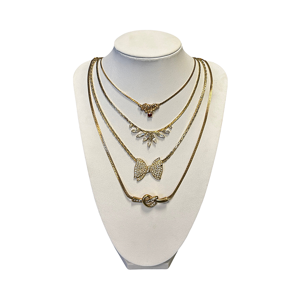 SMALL MODERN GILT AND PASTE / PEARL NECKLACE AS LISTED
