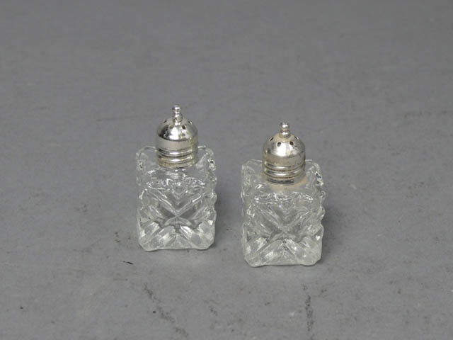 SMALL MOULDED GLASS CONDIMENT WITH E.P. SILVER TOP 5 CM HIGH