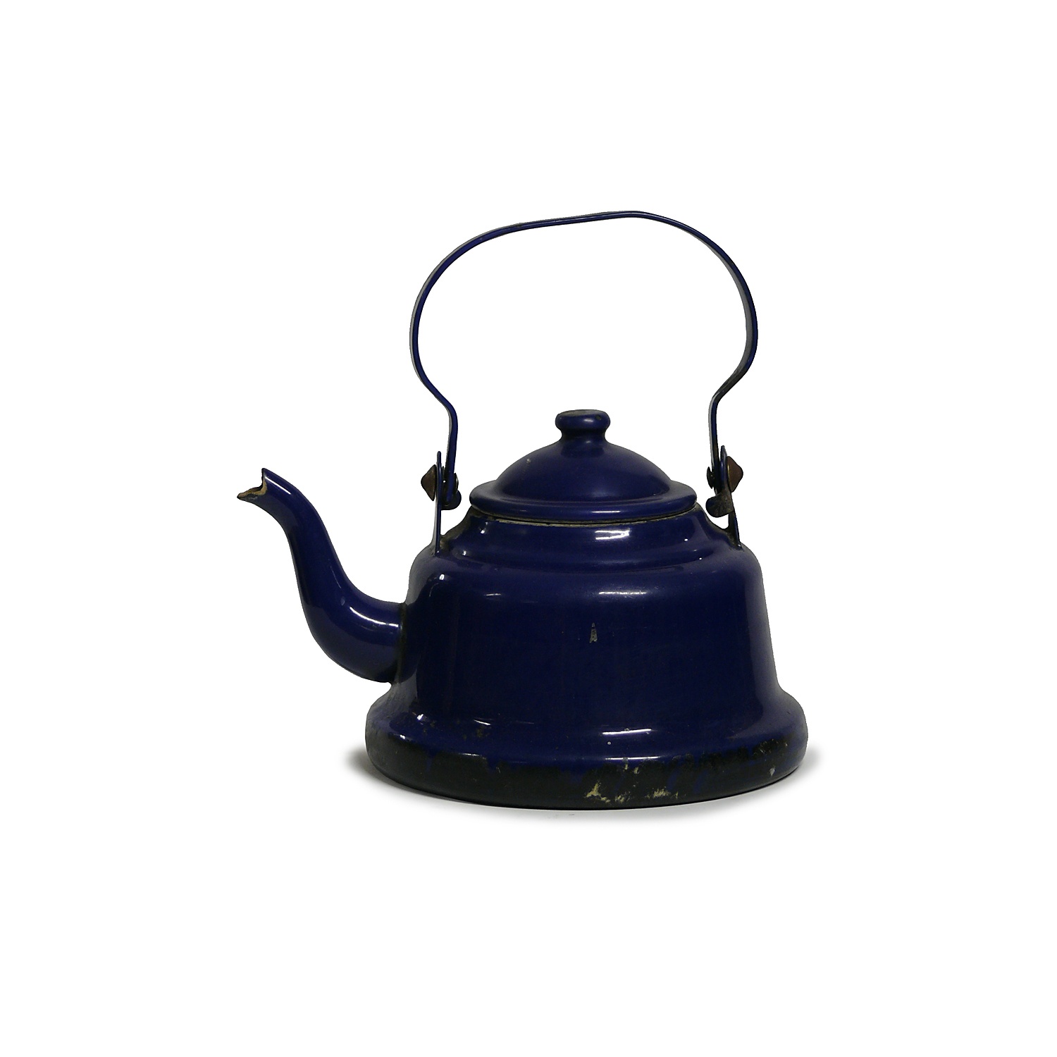 SMALL NAVY BLUE ENAMEL KETTLE AND LID