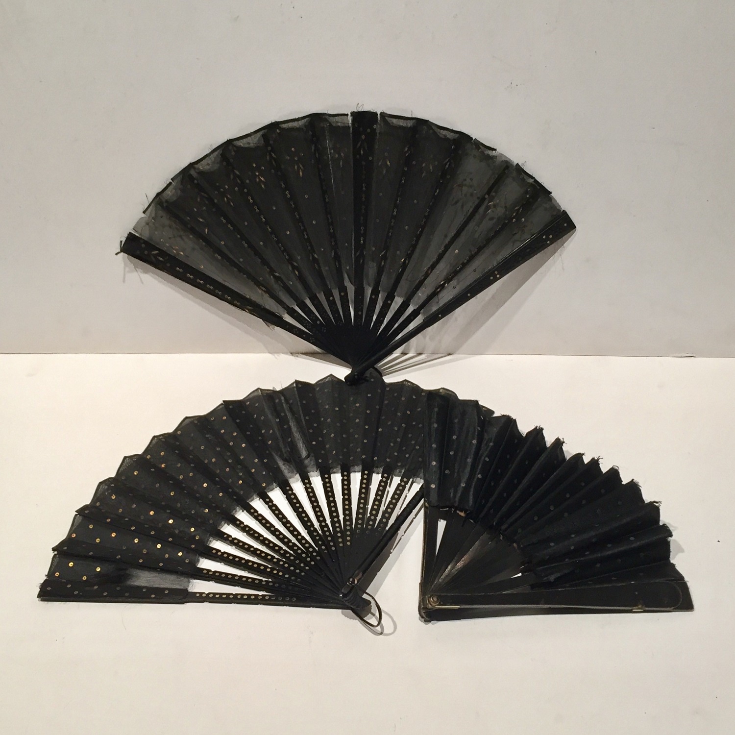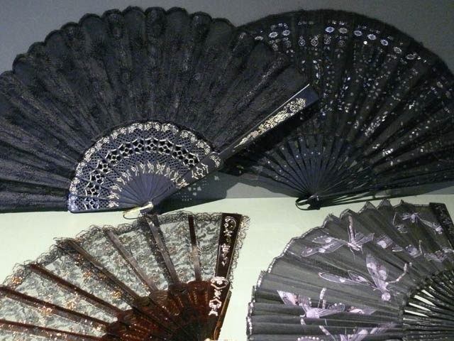 SMALL PERIOD FAN BLACK AND GOLD WITH WOODEN STICKS