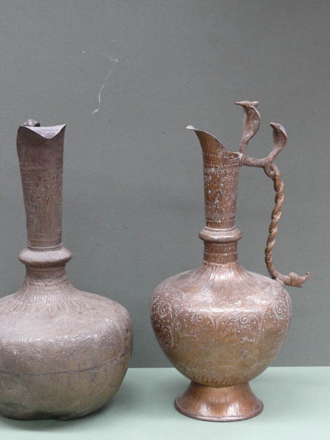 SMALL PERSIAN WATER JUG ENGRAVED COPPER COBRA HANDLE