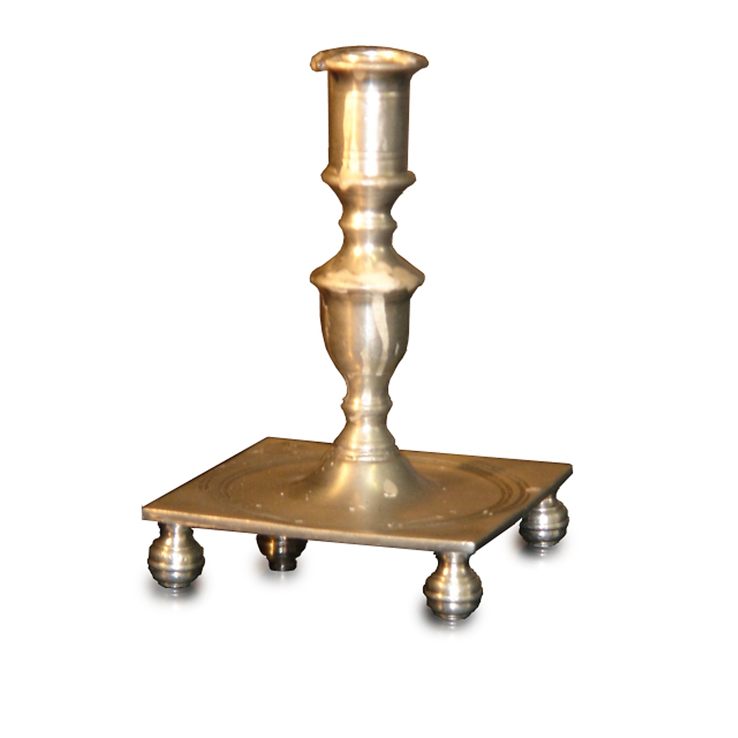 SMALL PEWTER CANDLESTICK WITH SQUARE BASE AND BALL FEET 7/i HIGH (X2)