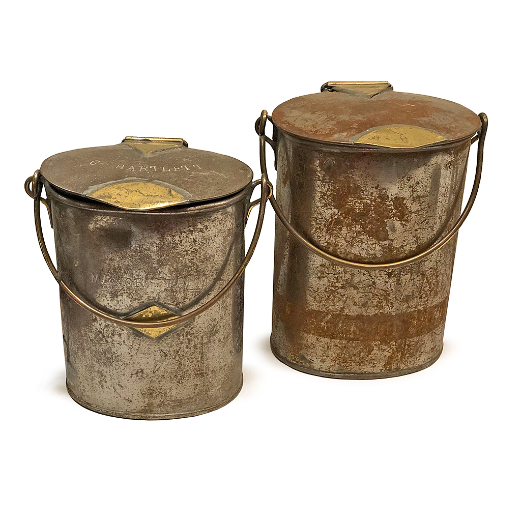 SMALL POLISHED STEEL AND BRASS OVAL MILK CHURN LOOP HANDLE 18 CM HIGH (X2)