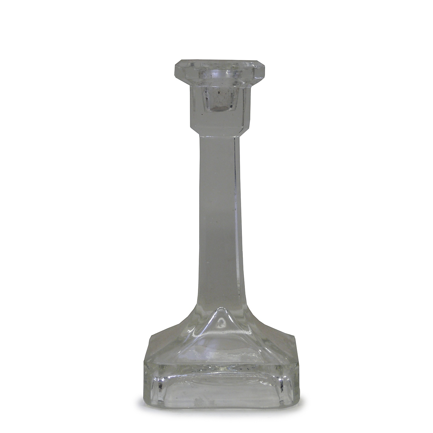 SMALL PRESSED GLASS CANDLESTICK SQUARE BASE 7/i HIGH