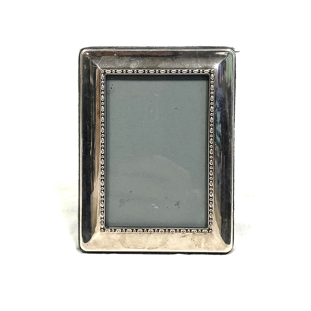 SMALL RECTANGULAR SILVER PHOTO FRAME WITH BEAD INNER BORDER 12 CM X 9 CM