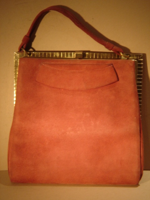 SMALL RED SUEDE HANDBAG WITH GILT CLASP 19 CM WIDE