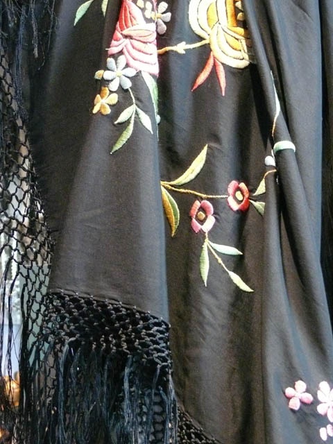 SMALL SILK SHAWL WITH SCATTERED FLORAL EMBROIDERY
