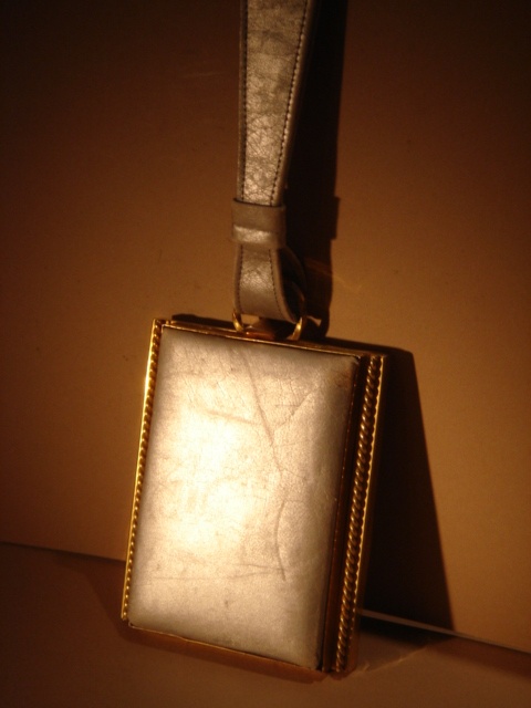 SMALL SILVER LEATHER AND GILT METAL EVENING HANDBAG 11 CM WIDE