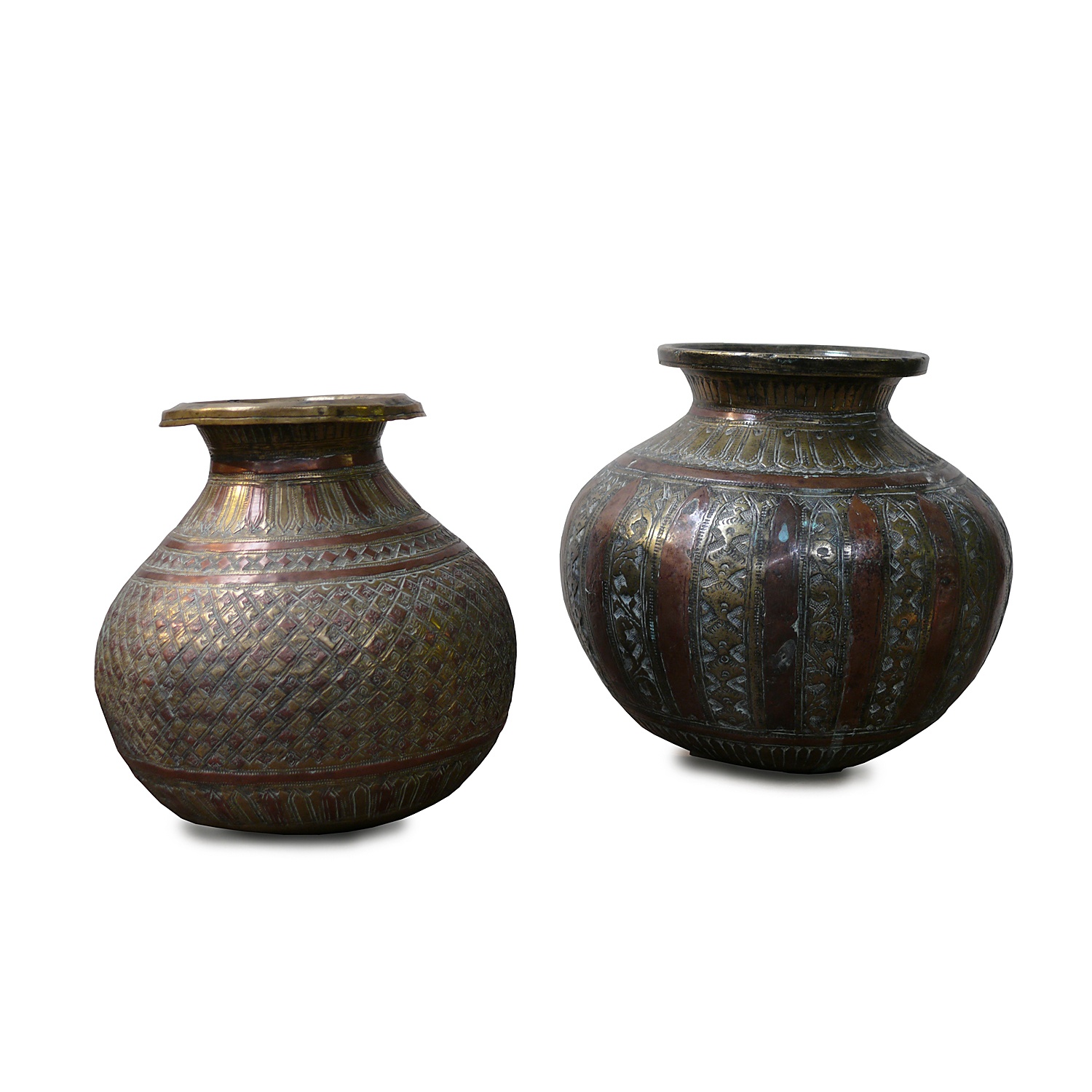SMALL SOUTH INDIAN COPPER LOTUS VASE 19TH C. (X3)
