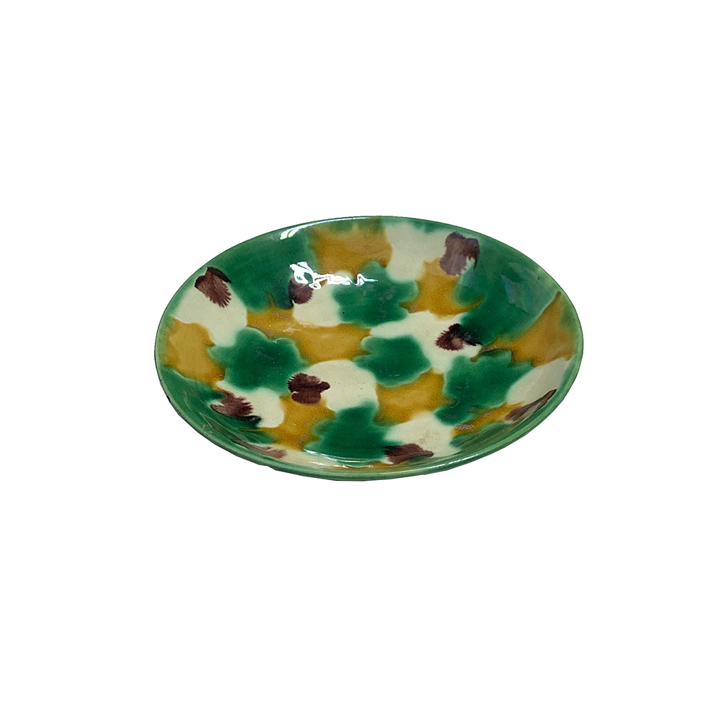 SMALL STAFFORDSHIRE PLATE / DISH GREEN AND AMBER SPLASH GLAZED 14 CM DIAM