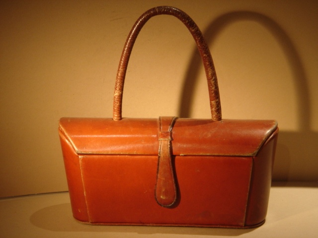 SMALL TAN LEATHER HANDBAG 27 CM WIDE