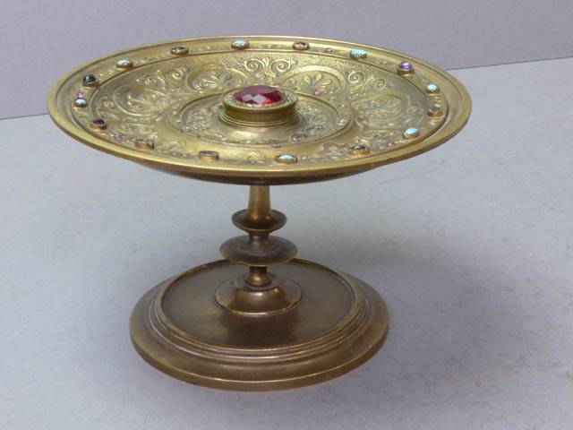 SMALL TAZZA ORNATE BRASS WITH INSET JEWELS