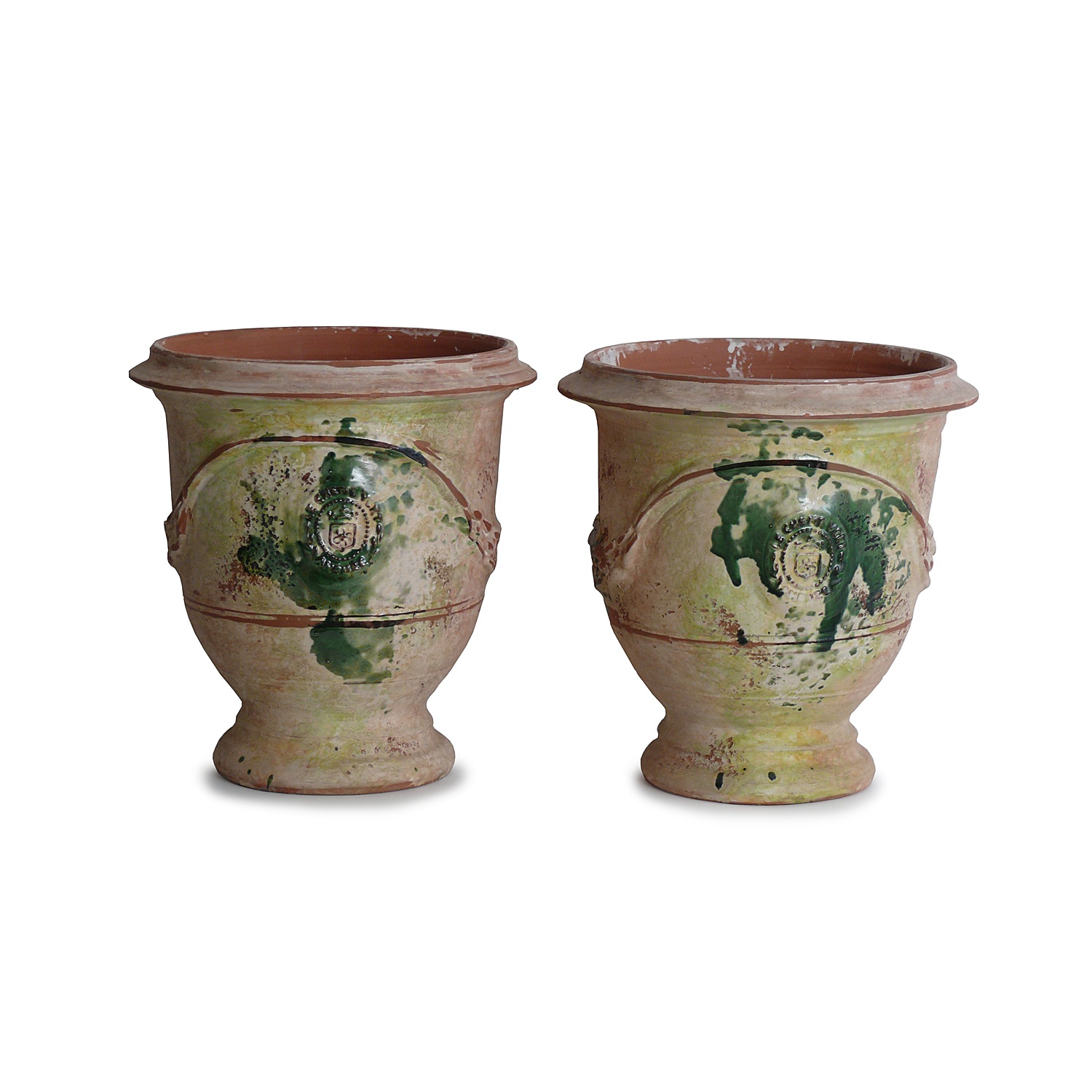SMALL TRADITIONAL ANDUZ GARDEN POT / VASE GLAZED TERRACOTTA WITH SWAG GARLANDS 30 CM HIGH (X6)