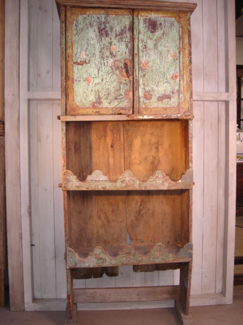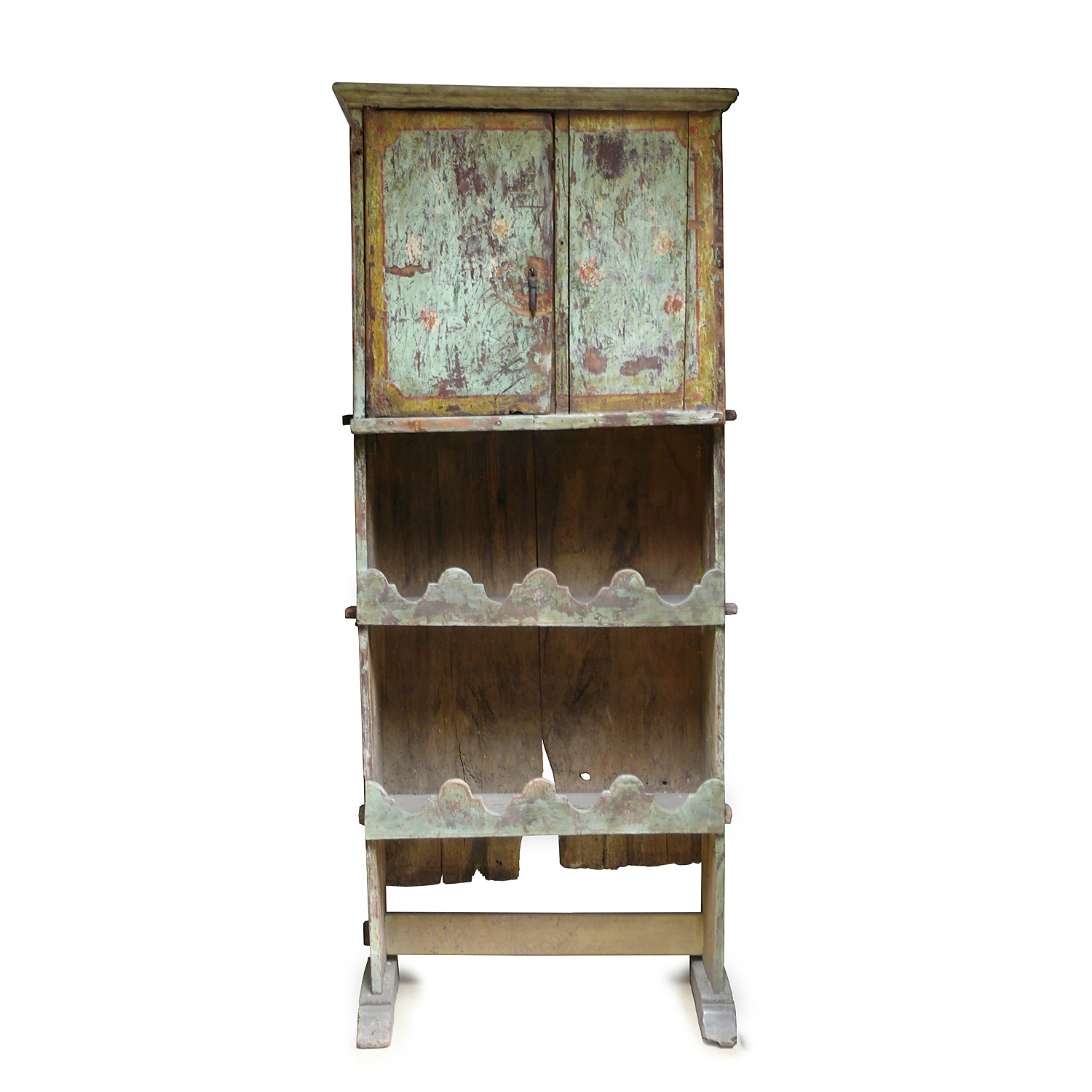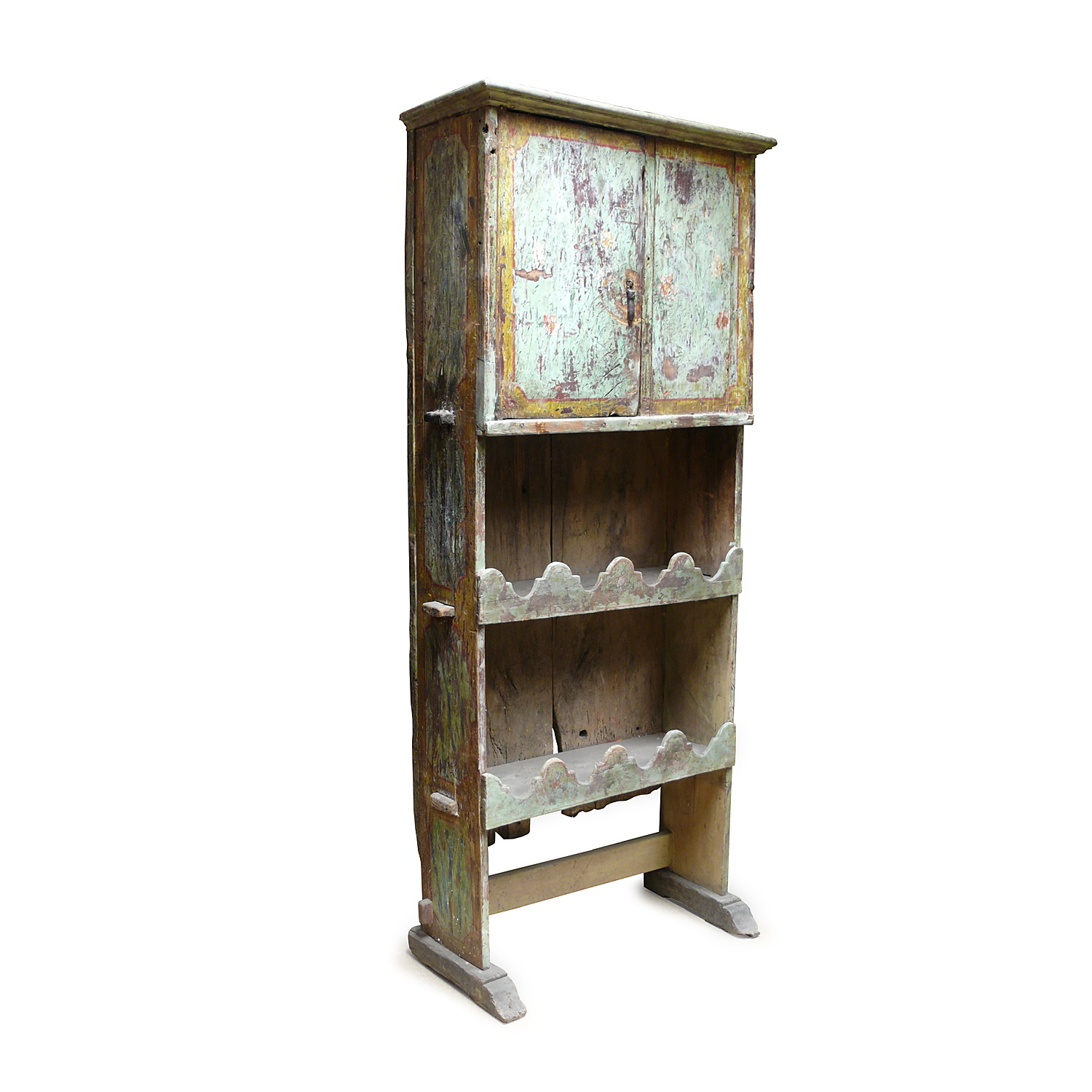 SPANISH RUSTIC PAINTED WOOD FOOD CUPBOARD TWO SHELVES 2'4/i WIDE