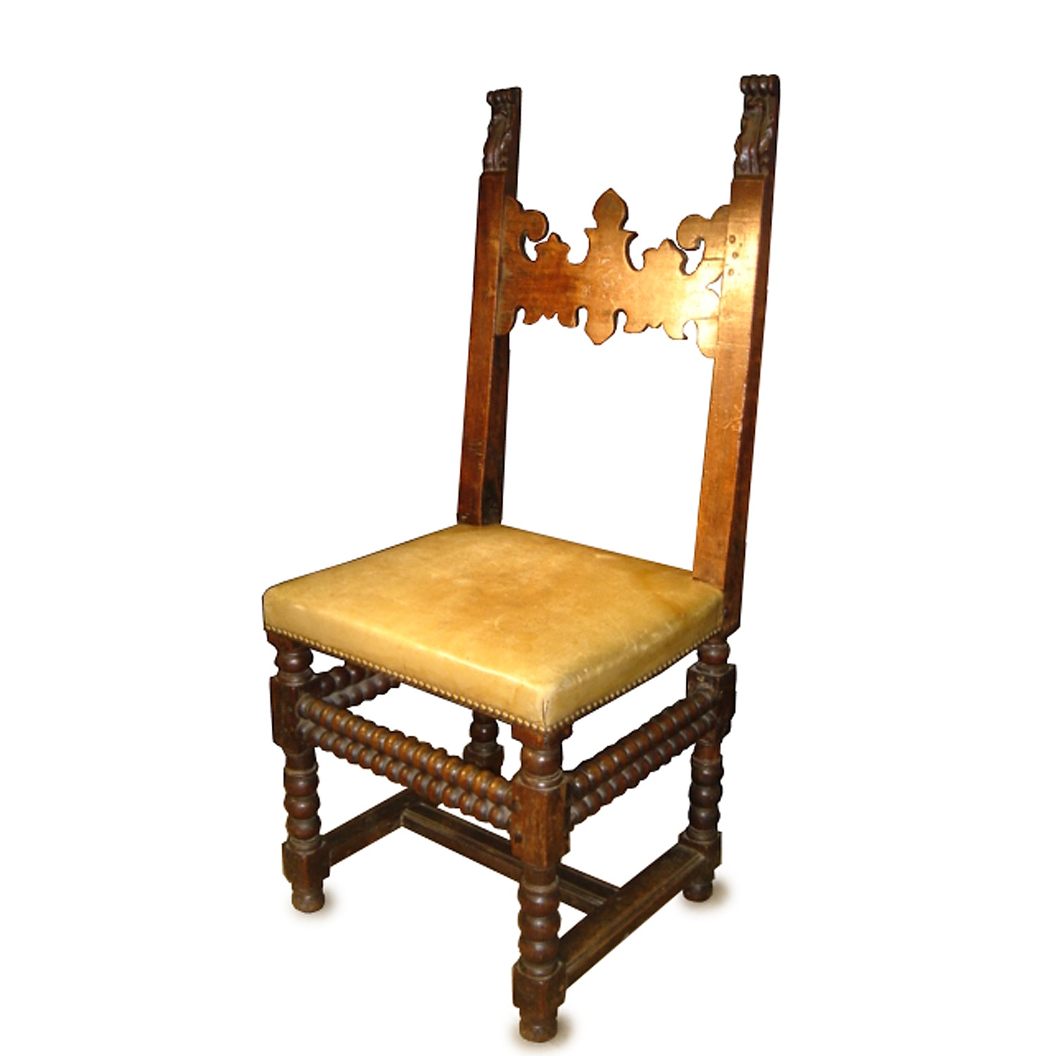 SPANISH SINGLE CHAIR PARCHMENT LEATHER SEAT BOBBIN LEGS 112 CM HIGH