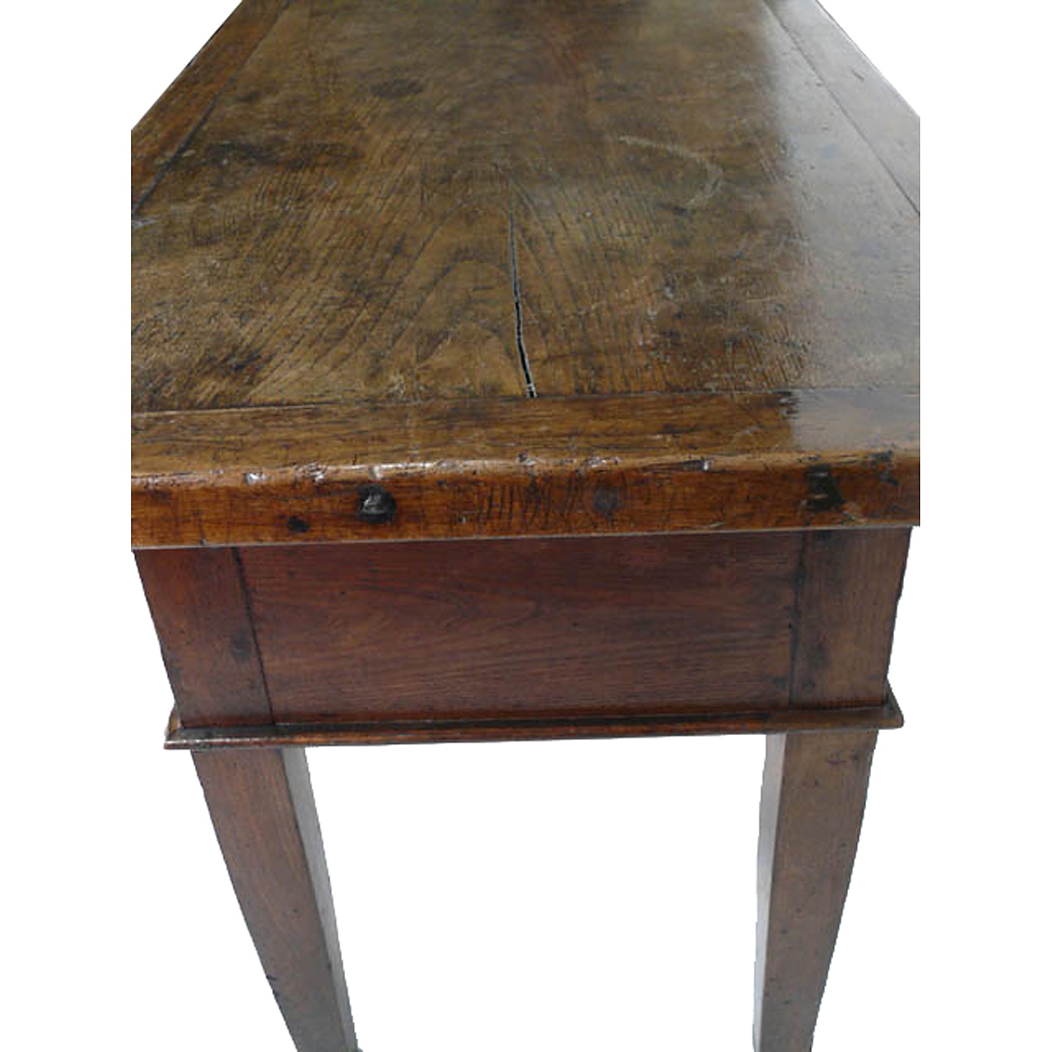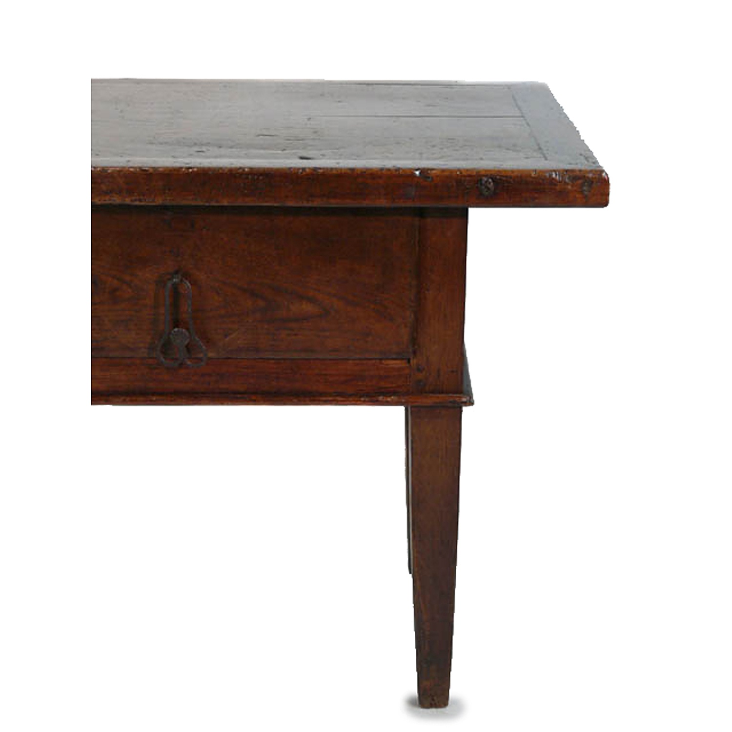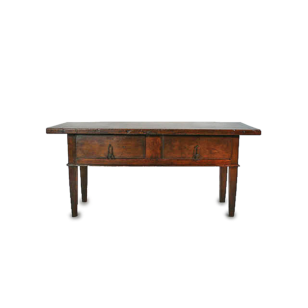 SPANISH TABLE 18TH CENT. CHESTNUT WITH TWO DRAWERS AND IRON LOOP HANDLES 5'8" WIDE 173 CM