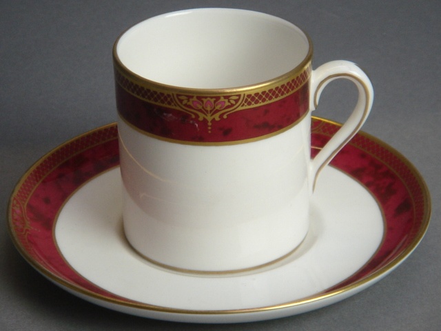 SPODE BORDEAUX RED BORDER DEMI TASSE COFFEE CUP AND SAUCER (X32)