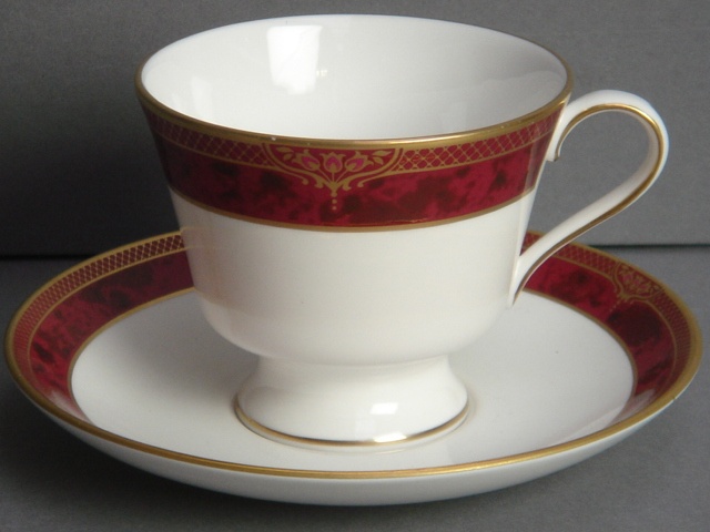 SPODE BORDEAUX RED BORDER TEACUP AND SAUCER (X15)
