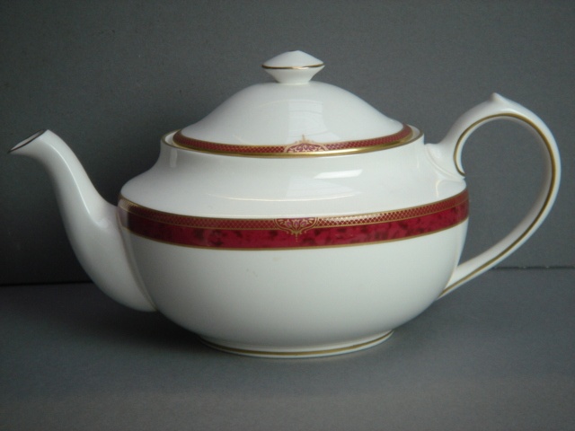 SPODE BORDEAUX RED BORDER TEAPOT WITH LID