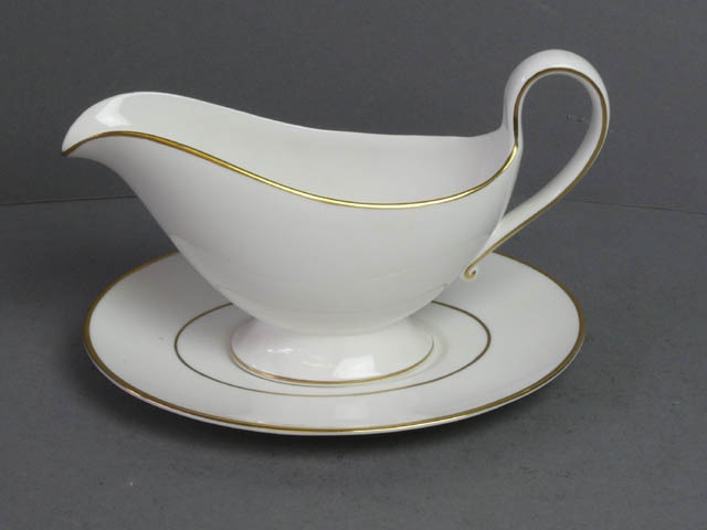 SPODE CLASSIC GOLD SAUCE BOAT AND STAND WHITE CHINA WITH GOLD RIM
