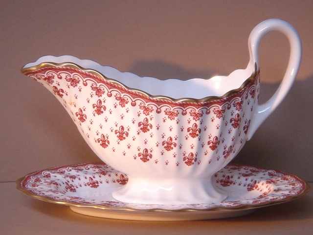 SPODE FLEUR DE LYS SAUCE BOAT AND STAND