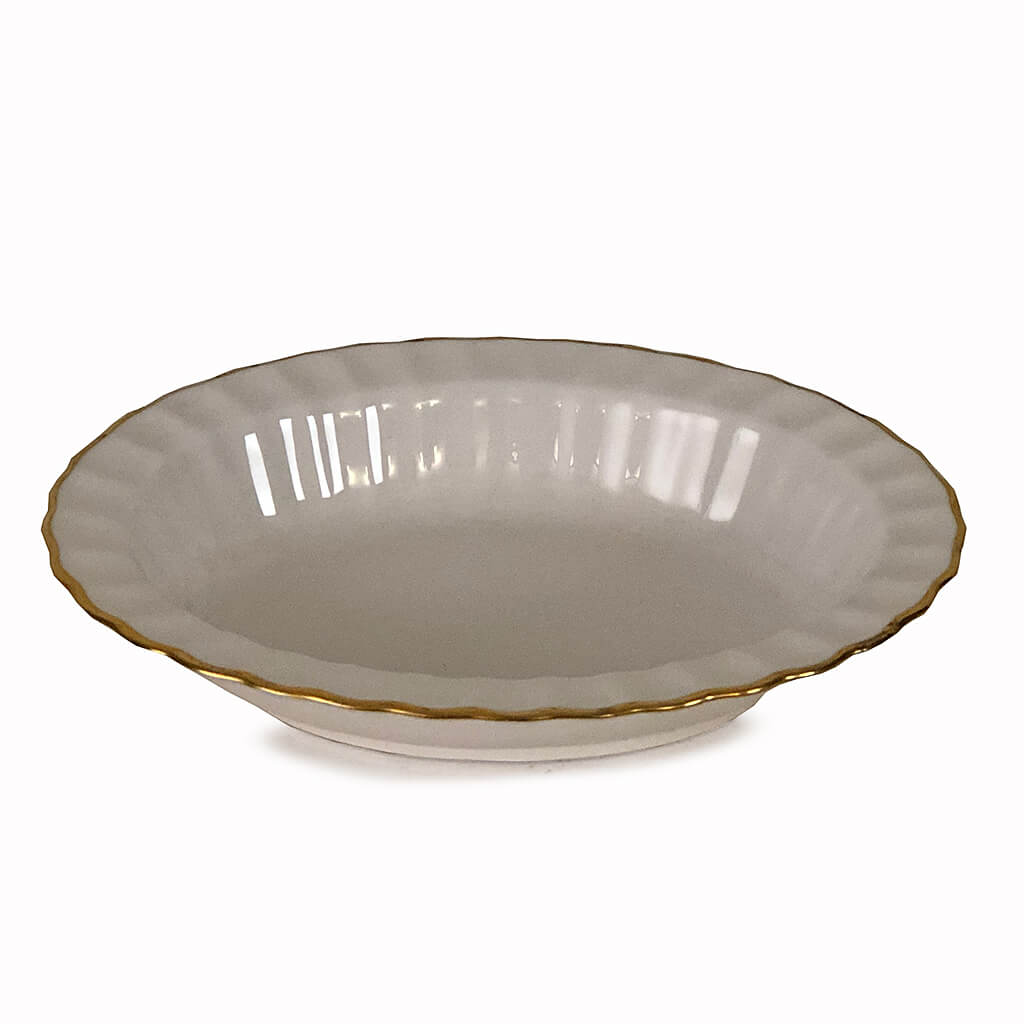 SPODE MIDAS RIBBED WHITE CHINA GOLD TRIM OVAL OPEN VEGETABLE TUREEN 25 CM
