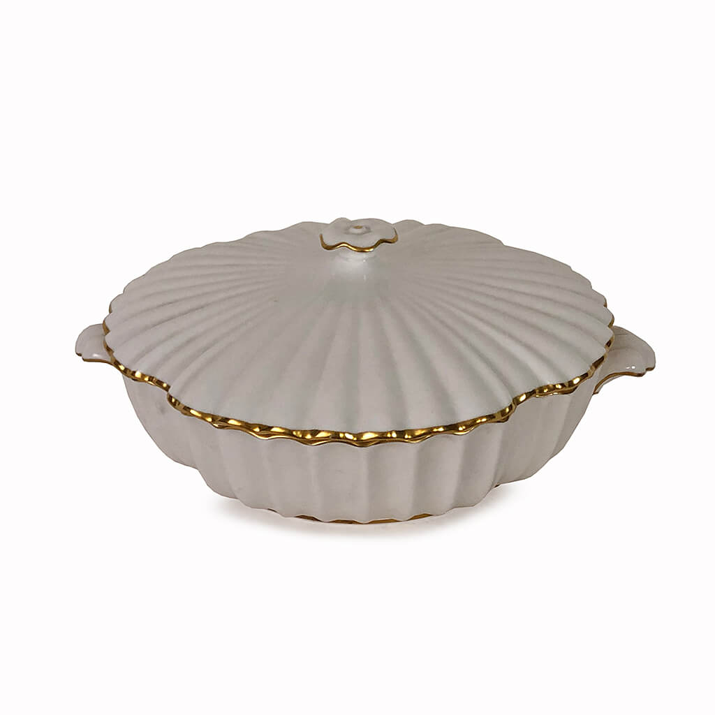 SPODE MIDAS RIBBED WHITE CHINA GOLD TRIM VEGETABLE TUREEN WITH LID (X2)