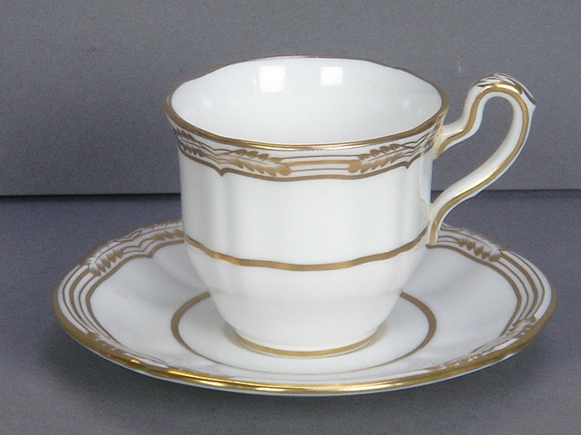 SPODE SHEFFIELD DEMI TASSE COFFEE CUP AND SAUCER WHITE AND GOLD (X63)