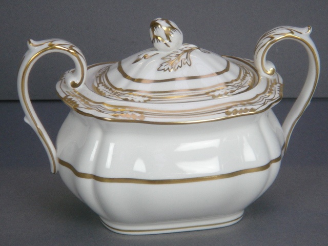 SPODE SHEFFIELD SUGAR BOX AND LID WHITE AND GOLD (X6)