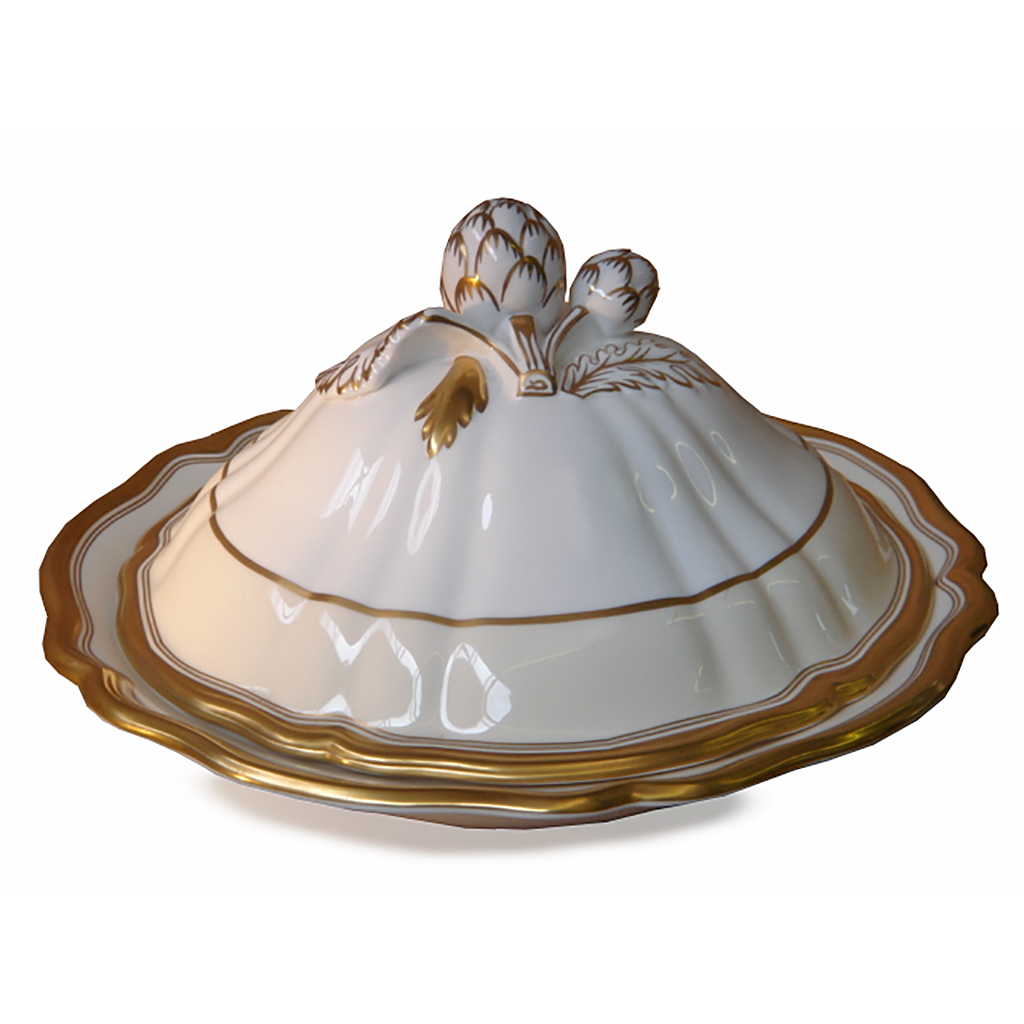 SPODE STRATFORD CREAM WHITE AND GOLD VEG DISH AND LID (X2)