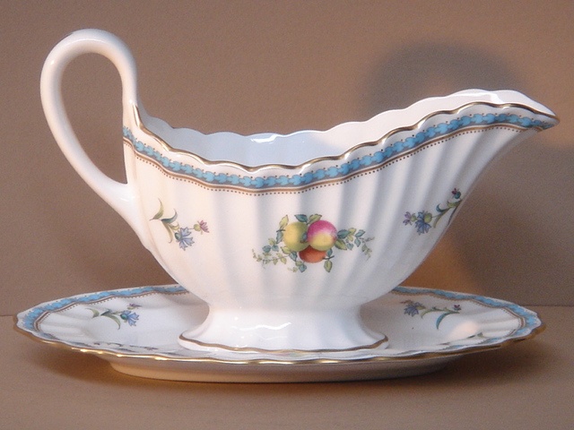 SPODE TRAPNELL SPRAYS SAUCE BOAT AND STAND TURQUOISE BORDER (X3)