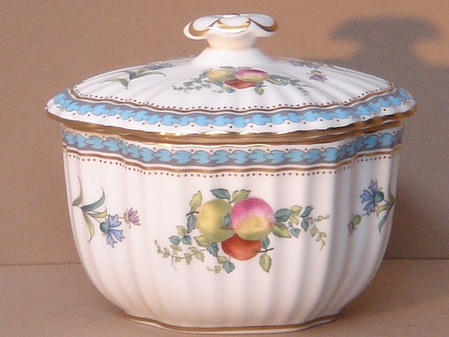 SPODE TRAPNELL SPRAYS SUGAR BOX AND LID TURQUOISE BORDER (X4)