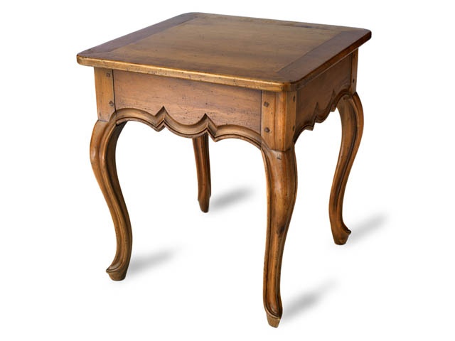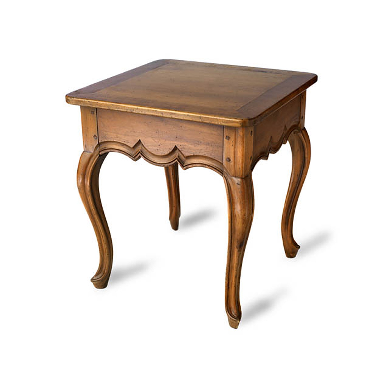 SQUARE FRENCH PROVINCIAL COFFEE / END TABLE WITH SHAPED APRON AND CABRIOLE LEGS FRUITWOOD 56 CM HIGH X 49 CM WIDE X 49 CM DEEP (X4)