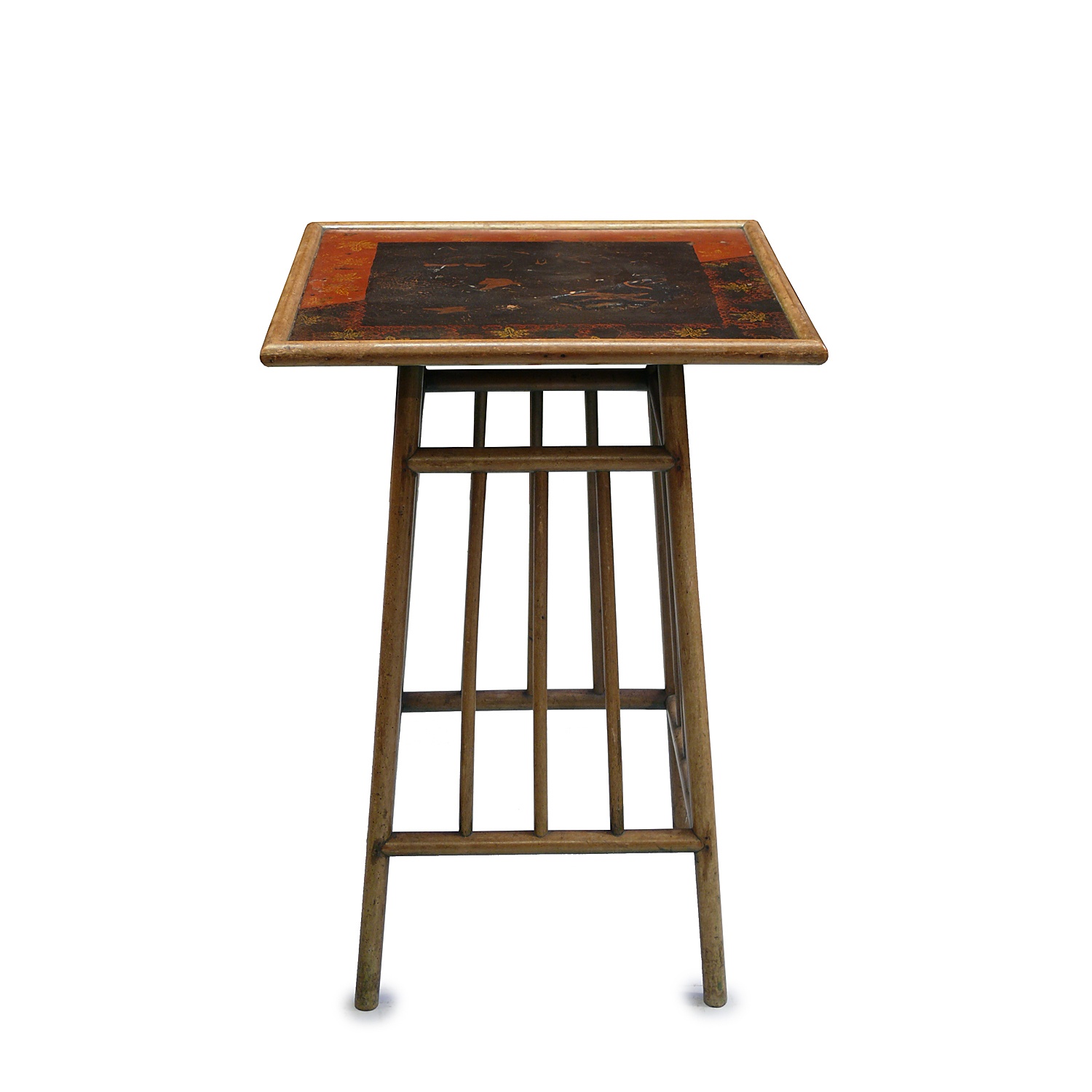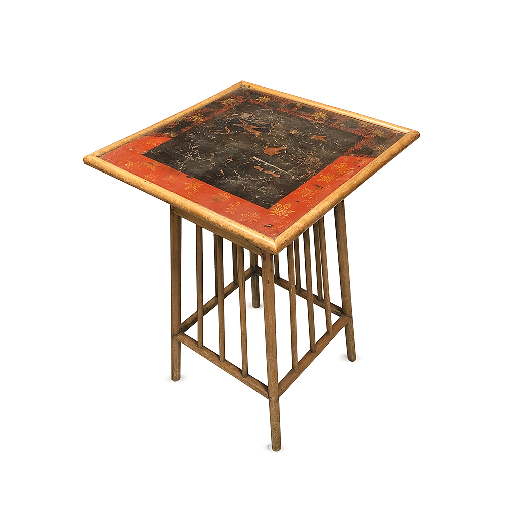 SQUARE LIGHT WOOD DOWELLING TABLE WITH RED CHINESE LACQUER TOP 20/i SQUARE
