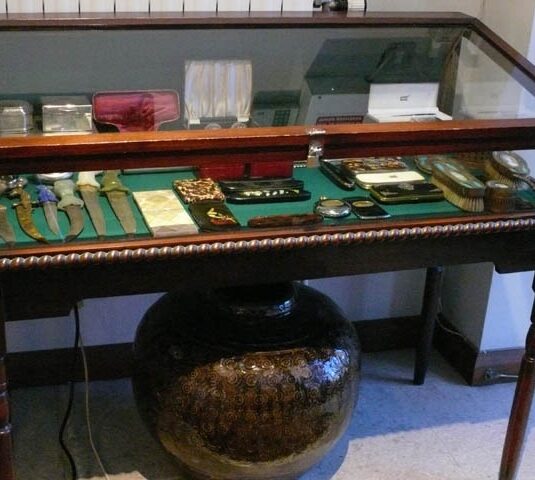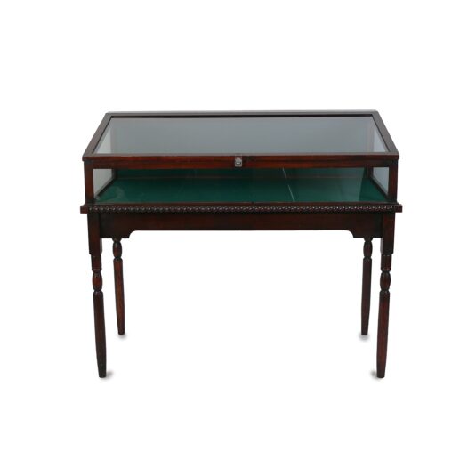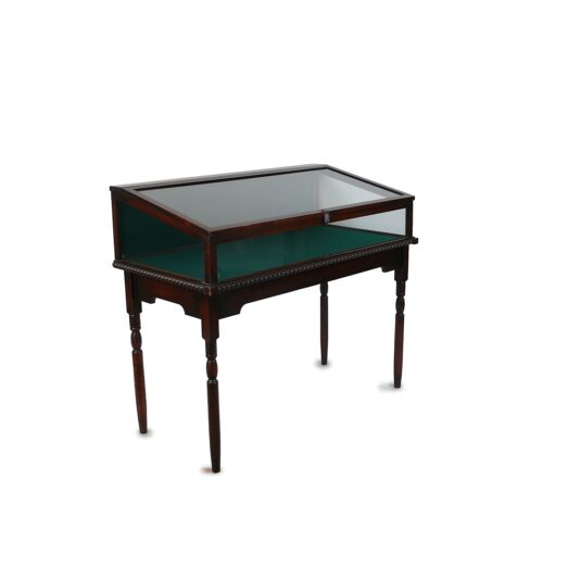 STAINED MAHOGANY SLOPE TOP DISPLAY CASE / VITRINE CABINET TABLE WITH TURNED LEGS 100 CM HIGH 119 CM LONG 61 CM DEEP (X3)