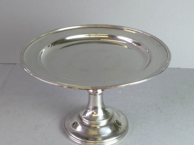 STAINLESS STEEL SMALL 2PCE.(BASE AND PLATE) CAKE STAND / COMPORT PLAIN 31 CM DIAM.