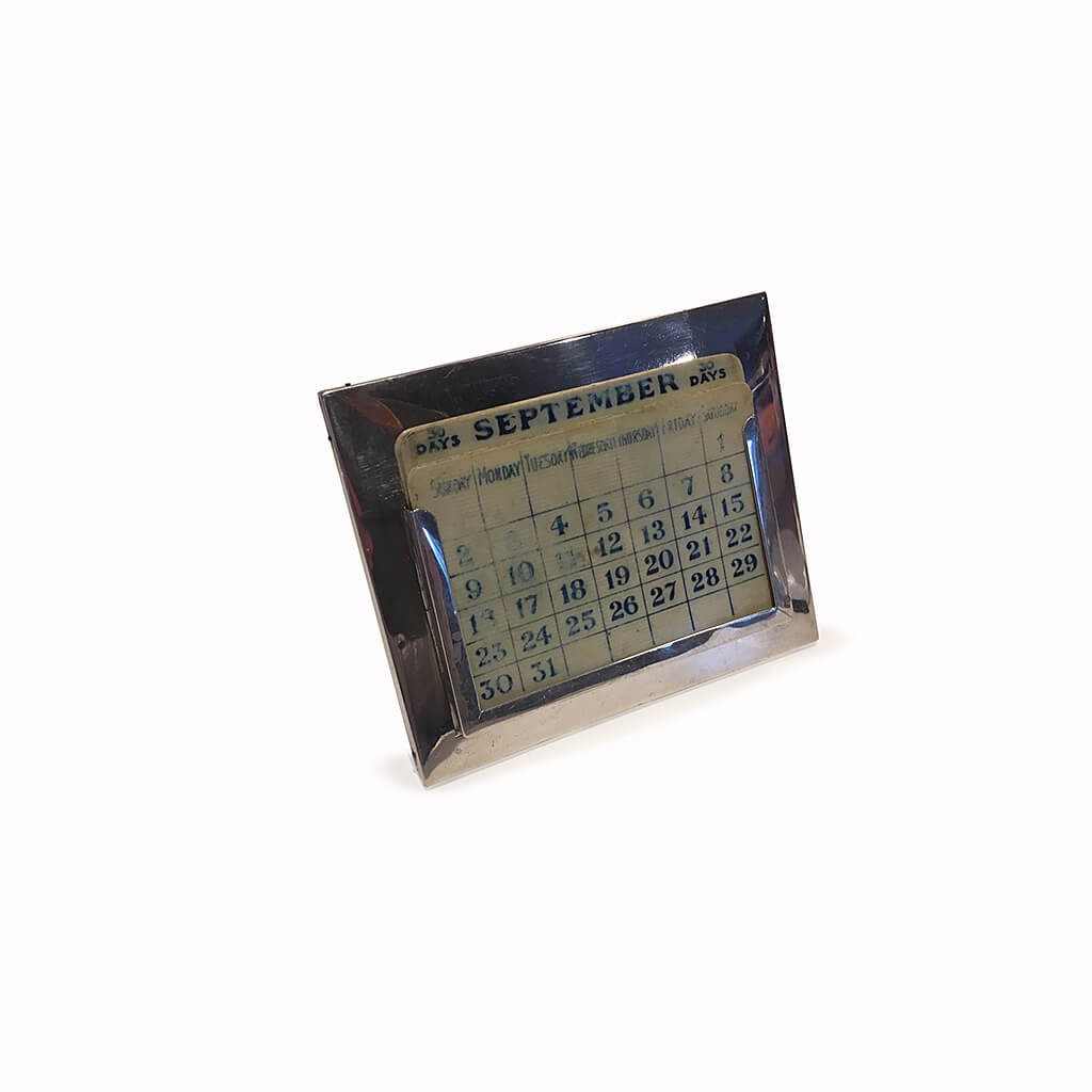STERLING SILVER PERPETUAL DESK CALENDAR WITH CELLULOID MONTH PANELS